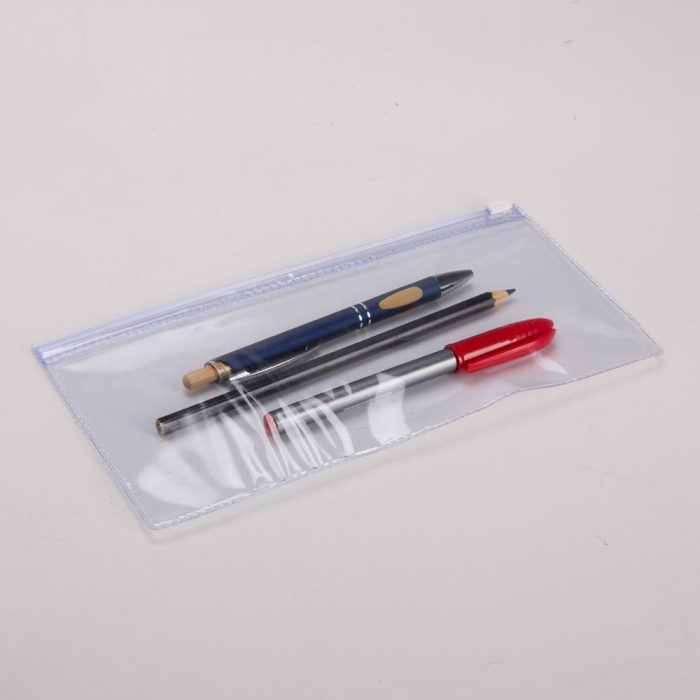 Descrição: Estojo em plástico transparente com fechamento zip zap deslizante.