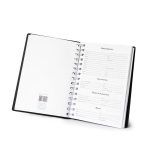 Descrição: Agenda diária 2026 com espiral, material plástico para lacre. Contém folha com bolso duplo, folhas para preenchimento de dados pessoais, calendários 2025 a 2027, planejamento, receitas e despesas mensais, agenda telefônica, mapa do Brasil, mapa mundi e acompanha régua de papel 15 cm.