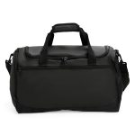 Descrição: Bolsa em couro sintético impermeável, com detalhes em malha e capacidade de até 36 litros. Apresenta três compartimentos em diferentes tamanhos, incluindo espaço tênis, além de bolso lateral em tela de nylon com elástico. Possui duas alças de mão com suporte de velcro e alça transversal.