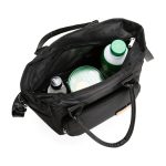 Descrição: Bolsa térmica com capacidade de até 13 litros. Confeccionada em Oxford resistente à água, possui compartimento interno com revestimento térmico em PEVA e fechamento em zíper. Conta ainda com bolso frontal com plaquinha de couro sintético fixada com velcro, um par de bolsos laterais e duas alças fixas para transporte, além de uma alça transversal regulável com mosquetões para encaixe nas fivelas laterais da bolsa.