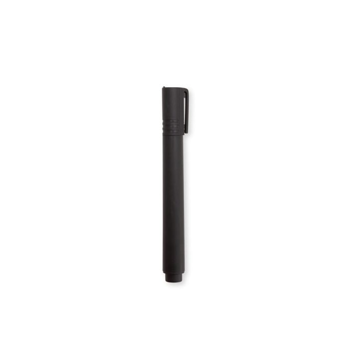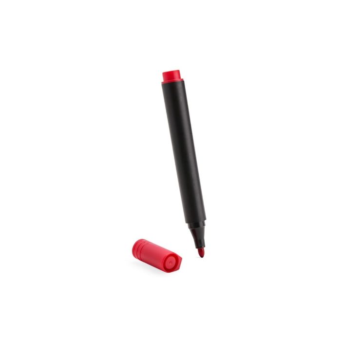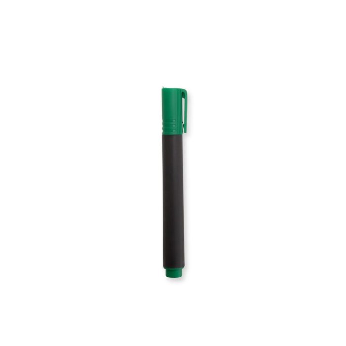Descrição: Caneta marcadora plástica com ponta em formato de pincel. Possui tinta atóxica à base de óleo com solvente alcoólico.