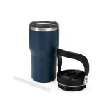 Descrição: Copo térmico em inox com pintura eletrostática e capacidade máxima de 600ml. Conta com estrutura de parede dupla e vedação a vácuo que permite a conservação da temperatura de líquidos por mais tempo. Possui tampa plástica rosqueável com protetor para o bocal, bico flip, canudo interno removível e alça fixa para transporte.