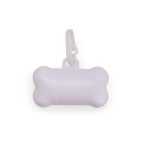Descrição: Kit de saquinhos coletores em formato de osso. Feito em plástico, possui abertura rosqueável que permite encaixar o refil, além de espaço para a retirada dos saquinhos. Acompanha mosquetão de plástico e refil de saquinhos.
