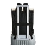 Descrição: Mochila em couro sintético impermeável com capacidade de até 16 litros. Apresenta compartimento interno com bolso para notebooks de até 13 polegadas. Possui duas alças para as costas, alça de mão e engate posterior para mala de viagem.