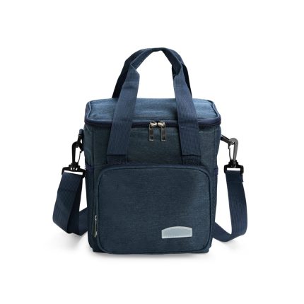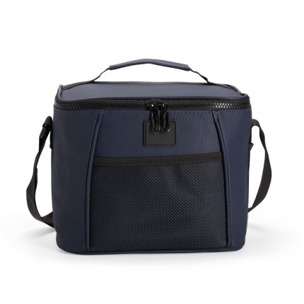 Descrição: Bolsa térmica confeccionada em Oxford impermeável, com detalhes em couro sintético, fechamento em zíper e capacidade de até 11 litros.
