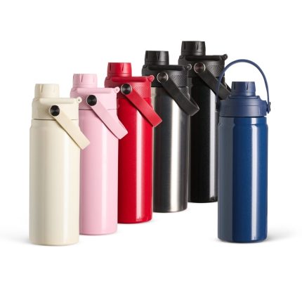 Descrição: Garrafa térmica em inox com pintura eletrostática e capacidade de até 600ml. Possui estrutura de parede dupla e tampa interna